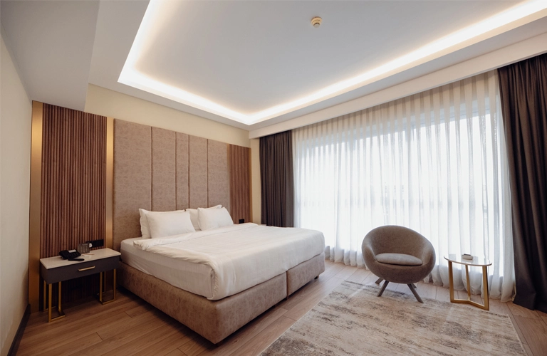 DELUXE ROOMDeluxe Rooms with city view, have a king size bed or twin bed alternatives.Maximum capacity : 2 Adults + 1 Child or Three Adults Room size: 24m2 Arrival Date 04 30 Departure Date Adults 1234 Child 0123 CHECK AVAILABILITY Arrival Date 04 30 Departure Date Adults 1234 Child 0123 CHECK AVAILABILITY DELUXE ROOMDeluxe Rooms with city view, have a king size bed or twin bed alternatives.Maximum capacity : 2 Adults + 1 Child or Three Adults Room size: 24m2 Room Features 24 m2 Wi-Fi Safe-box TV Tea-Coffee Set Minibar ( Paid ) Central Air Conditioning Bathtub Hair dryer Room Features 24 m2 Wi-Fi Safe-box TV Tea-Coffee Set Minibar ( Paid ) Central Air Conditioning Bathtub Hair dryer